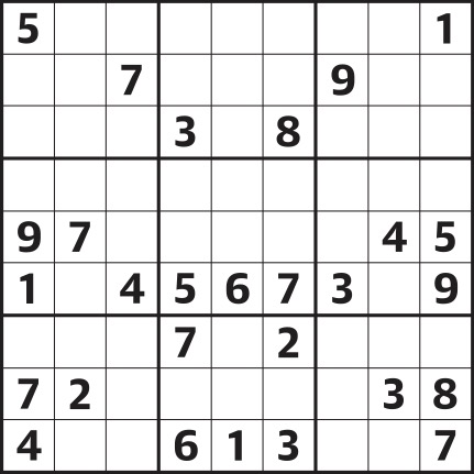 Fill the network so that each row contains, each column and 3 x 3 square on the numbers from 1 to 9.